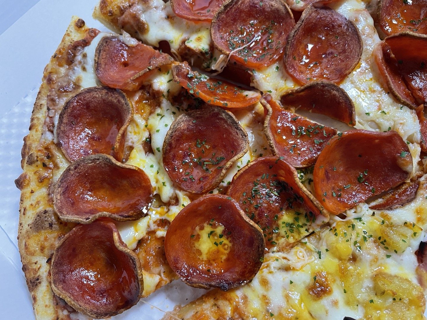 한입 씹었을때 와...페페로니 피자도 느끼할 수 있는데 매콤한거 시키시면진짜 와... 페페로니도 푸짐해서 정말 맛있었습니다.